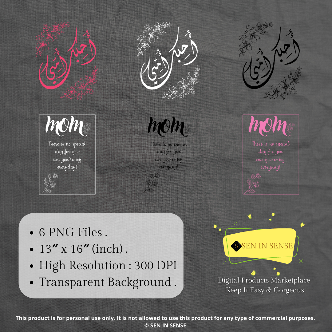 - Arabic printable Art that includes the Arabic sentence : أُحِبُّكِ أُمِّي which means I love you Mom .